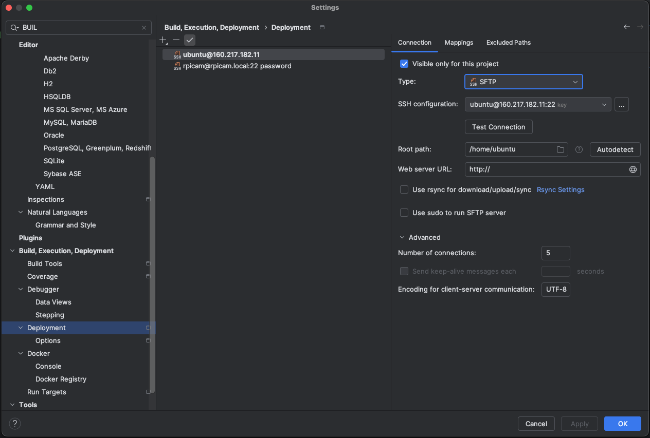 Uložte a klikněte pravým tlačítkem na projekt → Deployment → Upload to RemoteUbuntu