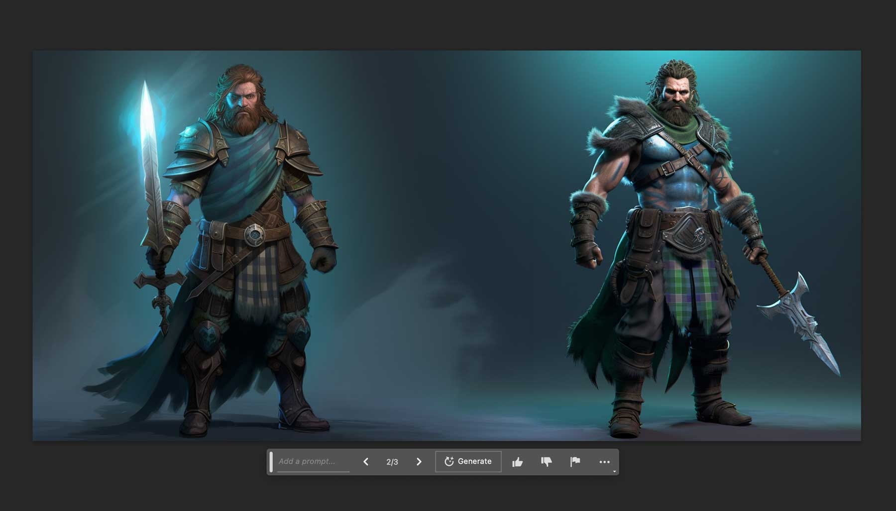 Kombinování fotografií je další skvělý způsob, jak využít funkci generativní výplně Photoshop AI. Ukážeme vám příklad se dvěma obrázky postav z videoher vytvořenými v Midjourney. Začneme vytvořením prázdného plátna o rozměrech 1800 x 1024 pixelů. Poté importujeme první obrázek na vaše plátno kliknutím na tlačítko importovat na kontextovém panelu úloh.